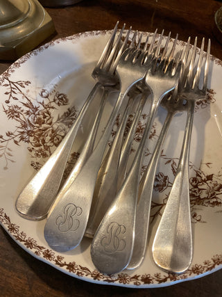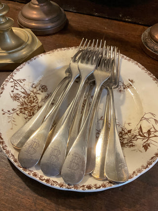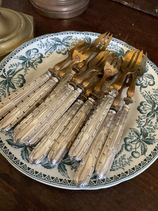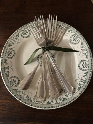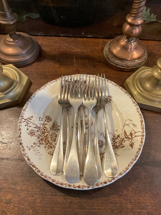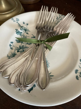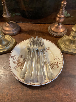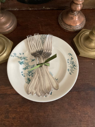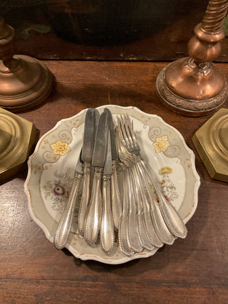 Vintage French Dusty Lilac Floral Porcelain Dinner Rimmed Salad/Soup Plates Set of 8