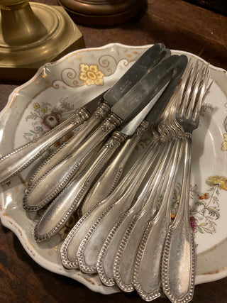 Vintage French Elegant Limoge Porcelain Sauce Server with Silver Serving Spoon