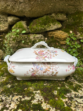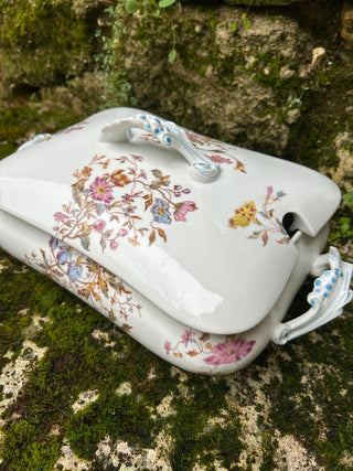 Vintage French Porcelain Gold & White Sauce Server with Silver Serving Spoon