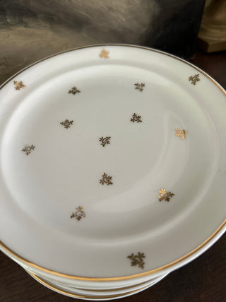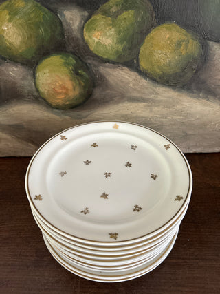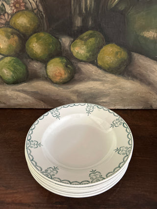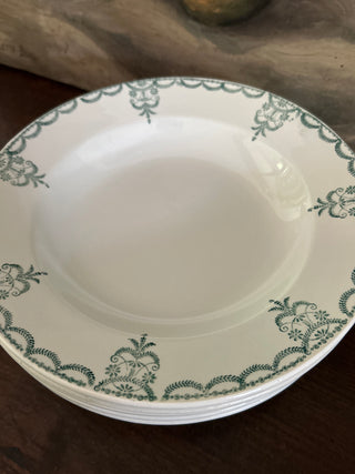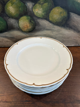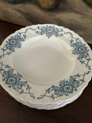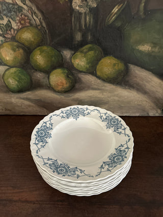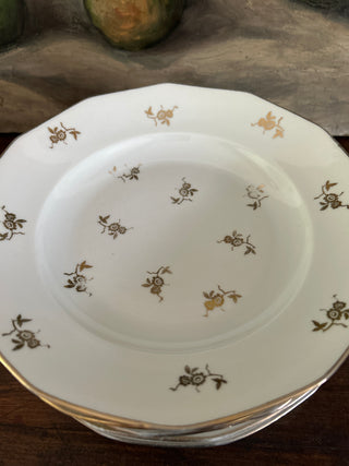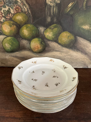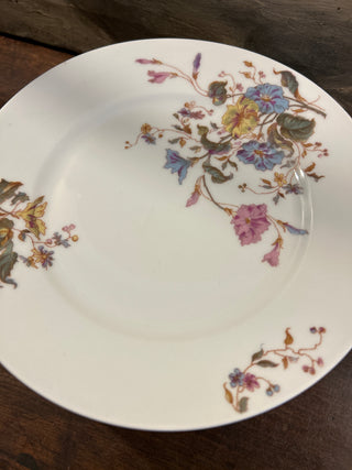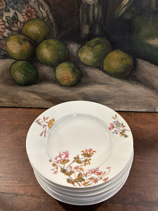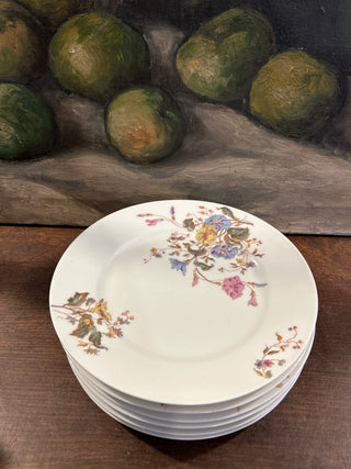 Vintage French Dusty Lilac Floral Porcelain Dinner Rimmed Salad/Soup Plates Set of 8