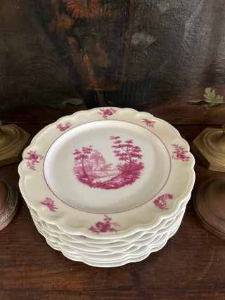 Vintage French Limoges Art Deco Aqua Border Rimmed Soupe/Salad Plates Set of 9