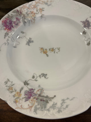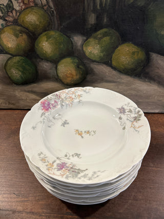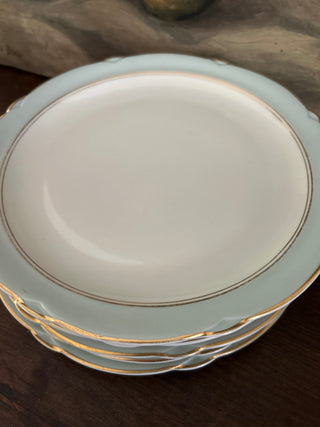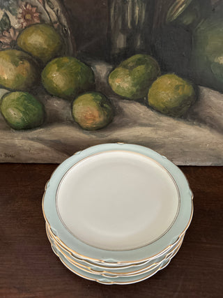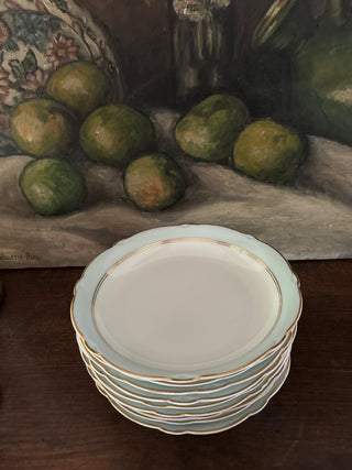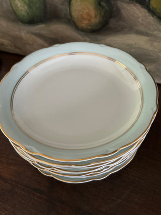 Vintage French Limoges Art Deco Aqua Border Rimmed Soupe/Salad Plates Set of 9
