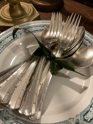 Our collection of vintage french silver flatware includes unique and rare finds from different villages and flea markets all over France. Personally handpicked for the best of quality, and meticulously cleaned and hand polished. The best part about our flatware collection is that it is customizable and sold in sets of 2 or 4, in order for you to put together your own eclectic table setting. We offer dinner knives, soup spoons, tablespoons, teaspoons, dinner forks, salad forks, café spoons in either art deco, monogrammed, simply classic or ornate styles!